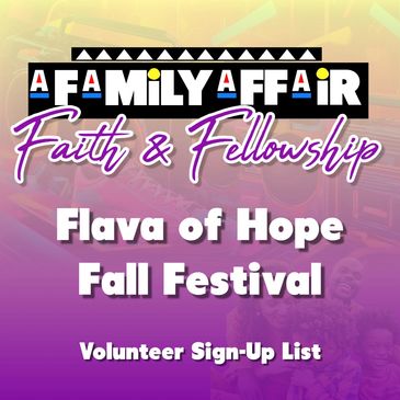 Help us spread the “Flava of Hope” by bringing your favorite food items to share! We’re asking volunteers to sign up to contribute the items that have been listed to make our Fall Festival a true feast for the community. Every item counts.....from homemade specialties to store-bought treats.